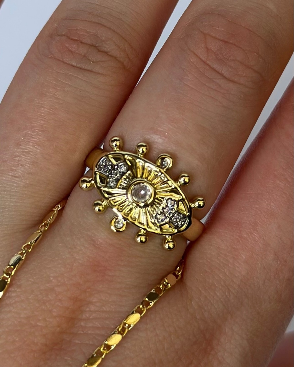 Ayarlanabilir. Ürün materyali pirinçtir. Ürünlerin özelliklerini kaybetmeden daha uzun süre kullanabilmesi için, parfüm, su, deterjan, dezenfektan gibi sıvı kimyasallardan uzak tutarak kullanılması tavsiye edilir. Dikkatli kullanımda kararma yapmaz.